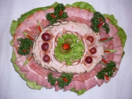 Znacznym ułatwieniem w przygotowaniu przyjęć komunijnych, weselnych, świątecznych są profesjonalnie udekorowane półmiski wędlin, gotowe do postawienia na stole. Są one przygotowywane na życzenie klienta w naszych sklepach firmowych.